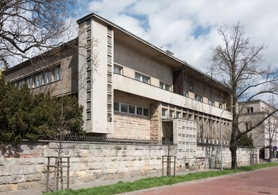 The villa at 6/8 Klonowa Street displays angular forms and geometric patterns characteristic of 1930s architecture in central Warsaw.