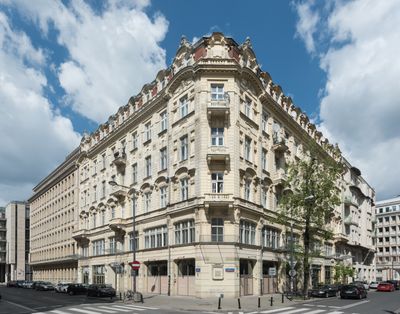 The tenement house, constructed in 1903 during Warsaw's rapid urban development, received official monument status and protection on October 3, 2007.