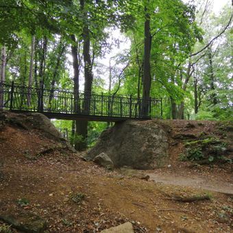 The park preserves a collection of fountains integrated with natural ravines, creating water features that complement the surrounding landscape.