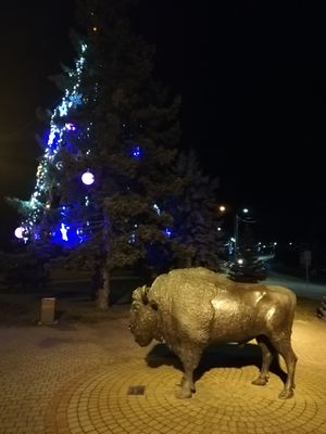 This statue represents the European bison's role as a symbol of strength in Polish wildlife, reflecting the region's connection to native species.