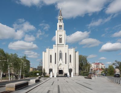 Located near recreational areas in eastern Warsaw, the church holds regular services and remains open to visitors throughout the week.