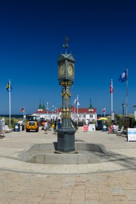 Street clock, cultural heritage monument in Ahlbeck, Mecklenburg-Western Pomerania, Germany