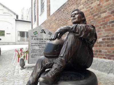 The statue sits on Ayrton Senna Street, named in 2015 to honor the link between Polish and Brazilian motorsport communities. Visitors can feel the weight of this international connection at this specific spot.