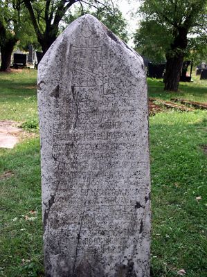 The monument features a white marble column measuring 186 centimeters in height with an engraved three-sided cross and calligraphic inscriptions.