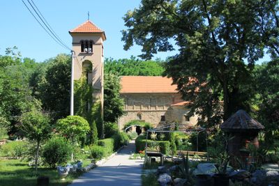 Situated near Lake Zaova, the monastery complex includes walking paths through the surrounding natural environment, connecting spiritual and natural elements.
