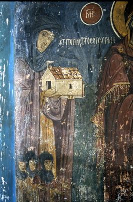 Original 15th-century murals display portraits of the founding sisters, with Ksenija presenting a model of the church to the Mother of God.