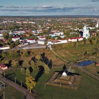 Yelabuga is a settlement on the right bank of the Kama in the Republic of Tatarstan, roughly 200 km east of Kazan. The streets run through an area with houses built of stone and wood, many dating from the trading era of the 19th century.