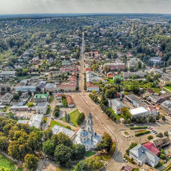 Tarusa sits on the left bank of the Oka, roughly 76 kilometers northeast of Kaluga and 140 kilometers south of Moscow. The settlement spreads across several hills sloping down to the river, with wooden houses and small museums scattered through residential streets.