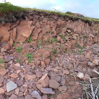 The exposed rock formations at Cape Korabl contain visible layers of amethyst, making it a reference point for understanding mineral deposits in northern Russia.