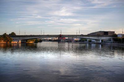 Avtozavodskiy Bridge is a road crossing over the Moscow River that links several districts of the Russian capital. It has six lanes for vehicles and pedestrian paths running along both sides.