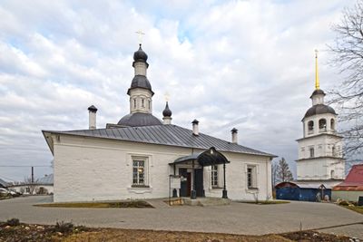 Kolotsky Convent is an Orthodox monastery in Mozhaysky District featuring a central cathedral in Baroque style as its main structure, which was rebuilt and expanded over time. The complex includes several churches and a multi-tiered bell tower that rises prominently above the grounds.