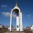 The bell-shaped monument features three 15-meter arches forming a circle, topped with an Orthodox cross and decorated with ancient Church Slavonic inscriptions.