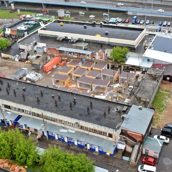 The market displays architectural elements that combine traditional Tatar design with modern structures, including decorative patterns and distinct roofing styles.