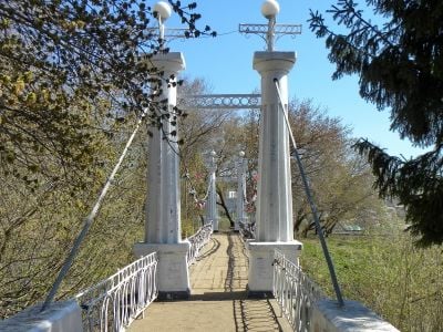 The Salavat Yulayev Garden extends across a hilltop location, offering views of the Belaya River through winding paths and landscaped green spaces.