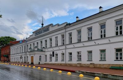 The Simbirsk Classical Gymnasium exhibits architectural elements characteristic of early nineteenth-century educational buildings with symmetrical windows and detailed stone facades.