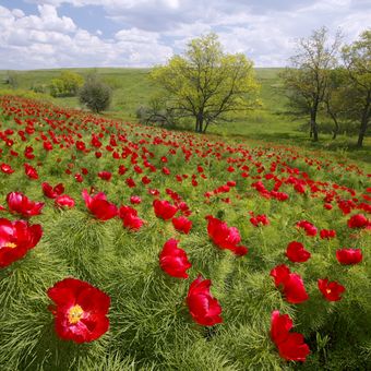 Пион тонколистный, Protected rare peony area in Volgograd Oblast, Russia.