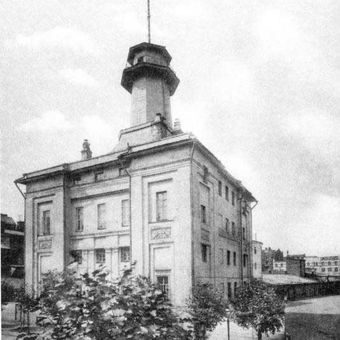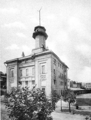 The Basmanny Police Station features a classical architectural design with a two-story structure and formerly contained a wooden watchtower on its roof.