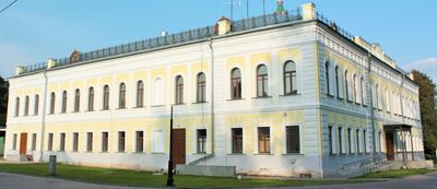 The Rogozhsky Clergy House functions as a two-story administrative building of the Russian Orthodox Old Believers Church in eastern Moscow.