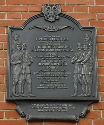 Мемориальная доска пензенцам — участникам Первой мировой войны, Memorial plaque at Military Training Institute, Chkalova Street in Penza, Russia.