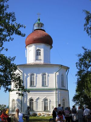 The Ascension Church is a building on Sekirnaya Hill on Solovetsky Island featuring two sections: a lower chapel dedicated to Archangel Michael and an upper one commemorating the Ascension of Christ. The structure incorporates a lighthouse mechanism with a French lens installed in 1904, providing maritime visibility of up to 40 kilometers.