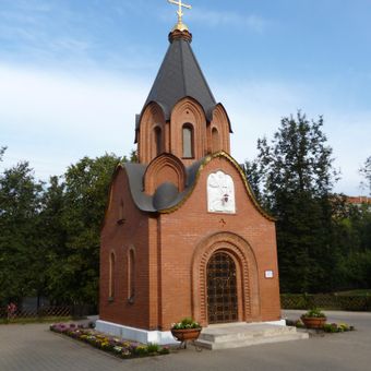 Часовня Спаса Преображения на Братском воинском кладбище, Orthodox chapel at Military Memorial Cemetery in Moscow, Russia.
