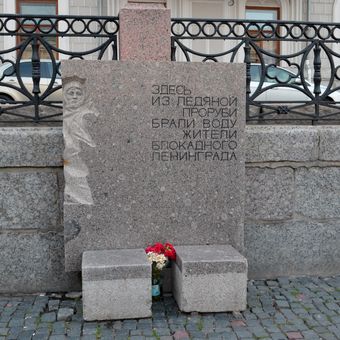 Блокадная прорубь, War memorial at Fontanka River Embankment, Saint Petersburg, Russia