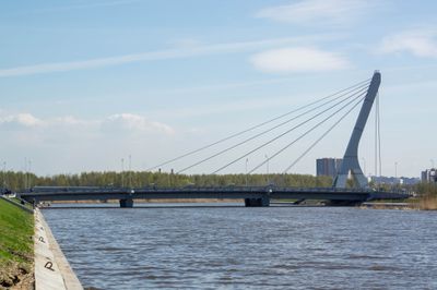 The bridge connects the Baltic Pearl district with the rest of Southwest Saint Petersburg, providing essential transportation links through Prospekt Geroev street.