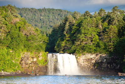 Ptichy Waterfall, Natural cascade in Kunashir Island, Russia.