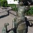 The bronze sculpture depicts Josef Švejk, the main character from a Czech novel, standing in a contemplative position near the city center.