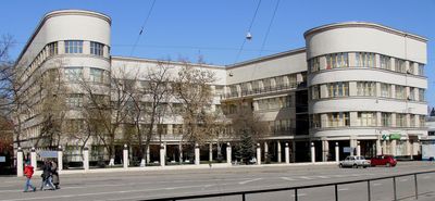 The Polyclinic of Railways Commissariat is a building on Novaya Basmannaya Street that shows early Soviet architecture with both practical and classical features. It was designed to serve railway workers and continues to function as a medical facility today.