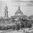 The monastery features multiple buildings including churches and residential quarters, connected by paths within fortified stone walls at the coordinates 54.53514, 36.24514.