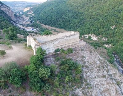 The fortress occupies a strategic position with defensive stone walls, towers, and structural elements that demonstrate advanced military engineering techniques of the time period.