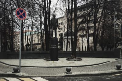 The 4.5-meter bronze statue stands on a granite pedestal at the intersection of Voznesensky and Yelisey streets in Moscow.