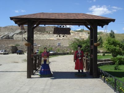 The park incorporates numerous sculptures depicting Cossack heritage, Russian folklore characters, and traditional elements such as the bread-and-salt welcome ceremony installation.