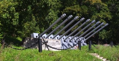The memorial complex dedicated to Aurora sailors is positioned on a southern slope and features nine artillery barrels from the ship's gun batteries. These cannons serve as physical reminders of the naval firepower that was deployed during the military conflict.