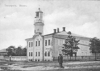 The lighthouse stood near the monument to Peter the Great, marking the connection between Taganrog's maritime heritage and its founding ruler.