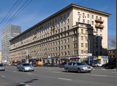 Architect Ivan Zholtovsky designed this residential structure in 1949, marking a significant example of Russian architectural development in the post-war period.