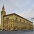 The House of NKVD Officials features high ceilings, grand staircases, and ornate decorative elements throughout its massive stone structure at Smolenskaya Square.