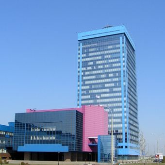 Construction began in the 1970s and the building opened in 1995 as a modern administrative center. The Central Scientific Research and Design Institute developed the structure, connecting Soviet industrial architecture with contemporary standards.