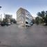 The residential complex comprises multiple buildings arranged at a 45-degree angle to the street grid, with red brick walls and white stucco accents.