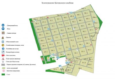 The main cemetery of Zelenograd spans across a large territory with distinct sections, memorial stones, and dedicated pathways connecting different burial areas.