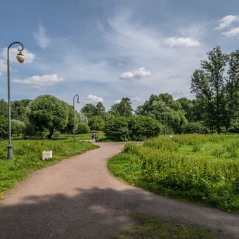 The park can be entered from several points near Prospekt Stachek, and you will find benches throughout for resting. It is easily accessible and well-organized for a comfortable walk.