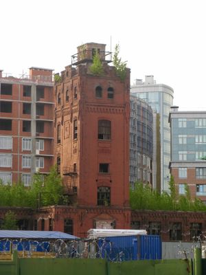 The water tower represents a physical testament to Saint Petersburg's industrial development, featuring engineering solutions for water supply systems from the early 1900s.