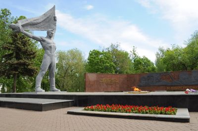 The memorial complex includes inscriptions and artistic elements that document the achievements of local residents during significant historical events.