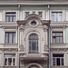 The Korovin revenue house displays decorative details with natural forms across its facade and features two distinct architectural sections with ornamental elements.