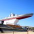 The memorial incorporates an actual military vessel as its centerpiece, representing the specific type of boat used during the wartime operations.