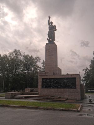 Architect Vladimir Vitman designed specific sculptural elements within the monument to reflect the strength and determination of the Russian working class during that period.