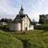 The Saint Isidor Church displays white stone walls with decorative elements and stands within ancient earth ramparts near Lake Nero.