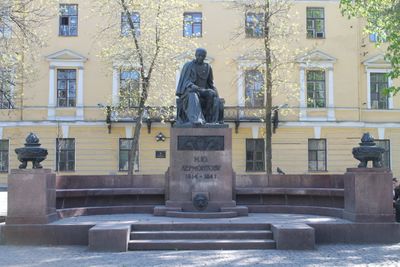 The Monument to Lermontov is a bronze and granite statue standing on Lermontovsky prospekt within the Nikolaevskaya Cavalry School Garden. The sculpture depicts the Russian poet and combines both materials to create a durable artistic work.