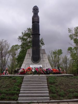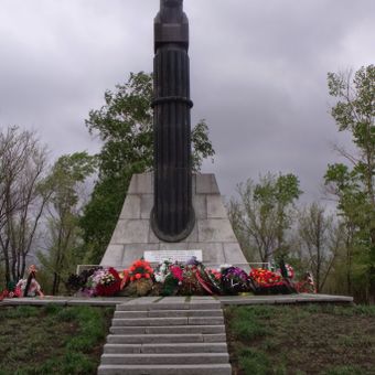 The monument replaced an original obelisk in 1982, marking the location where cosmonaut Vladimir Komarov died during the Soyuz 1 spacecraft landing in 1967.